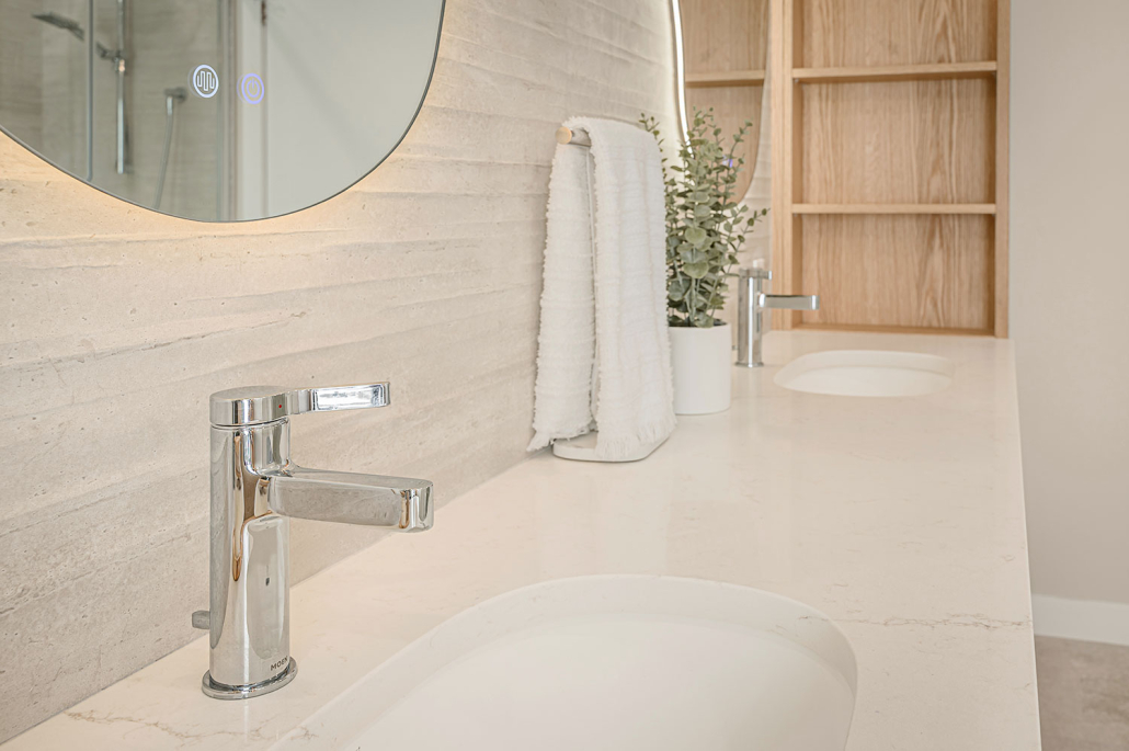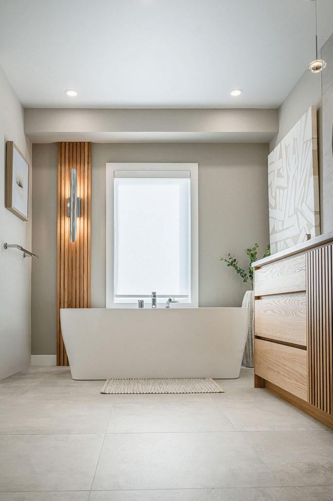 Ce projet de rénovation salle de bain axé sur un design intérieur apaisant, les textures naturelles et une ambiance spa moderne, parfait pour un moment pour soi!