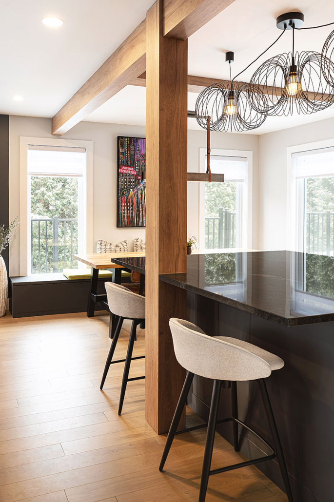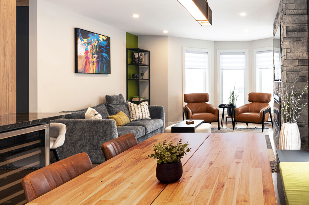 Ce projet de design intérieur contemporain se distingue par une approche chaleureuse et fonctionnelle, axée sur des espaces ouverts et une circulation fluide. L’association du bois naturel, de la pierre et de touches industrielles crée une ambiance moderne et équilibrée. Des accents de couleur audacieux viennent dynamiser l’ensemble et affirmer une identité forte, sans compromettre l’harmonie du décor. Un design pensé pour le confort quotidien, la durabilité et l’esthétique intemporelle.